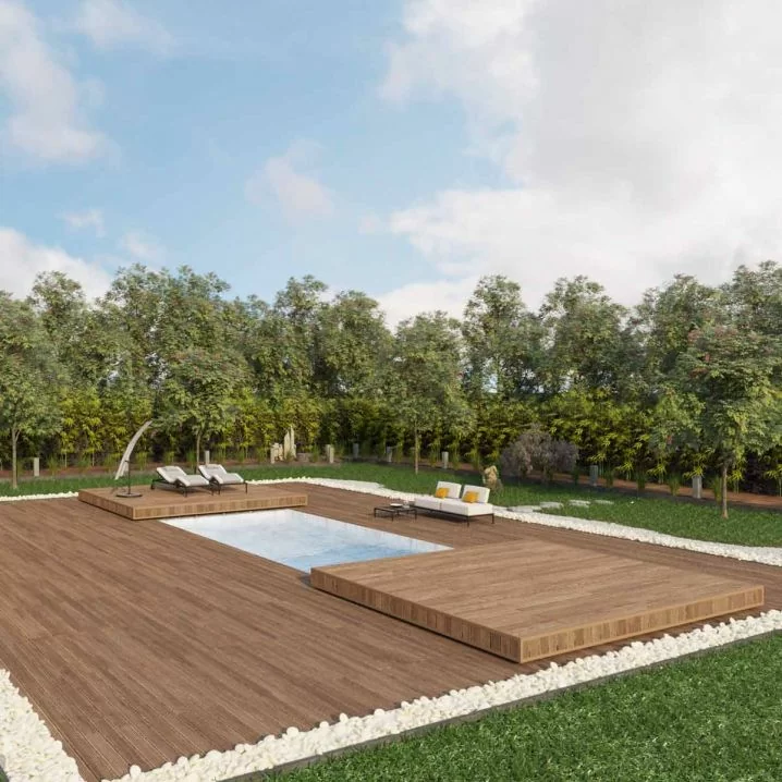 Ідеальний вибір для басейнів шириною до 7 м та довжиною до 12 м. Конструкція з оцинкованої сталі і терасної дошки забезпечує теплоізоляцію, зберігаючи тепло і захищаючи від сміття.
