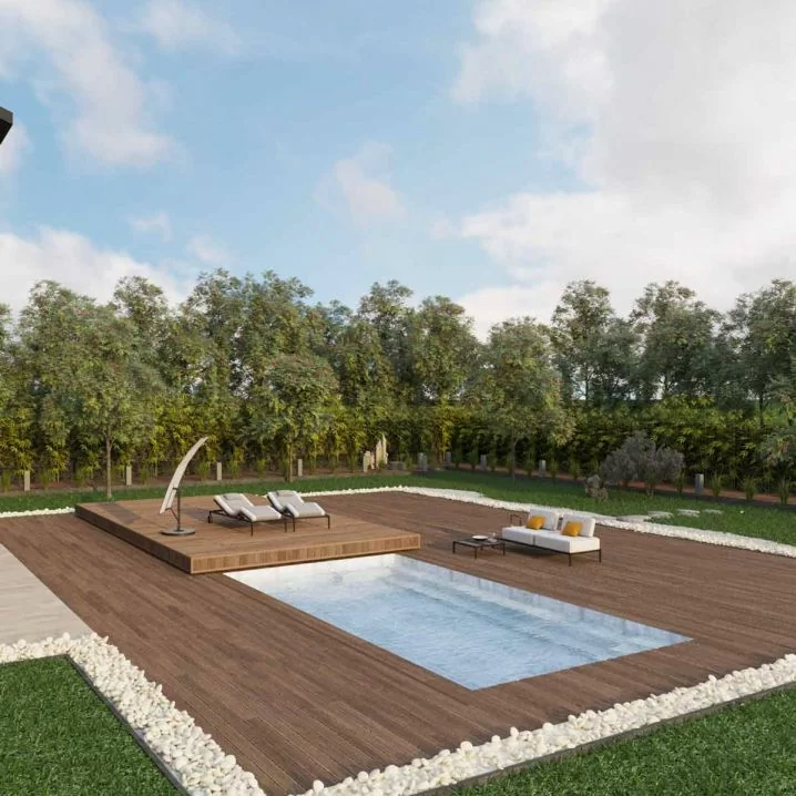 Ідеальний варіант для покриття стаціонарних басейнів шириною до 7 м і довжиною до 12 м. Конструкція з міцної оцинкованої сталі з покриттям з терасної дошки забезпечує теплоізоляцію, запобігаючи випаровуванню води та захищаючи басейн від сміття.