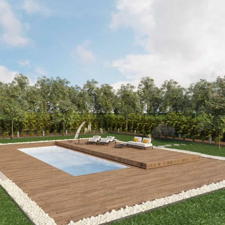 Ідеальний варіант для басейнів шириною до 5 м і довжиною до 10 м. Конструкція з оцинкованої сталі та терасної дошки забезпечує теплоізоляцію та герметичність, перешкоджаючи випаровуванню води.