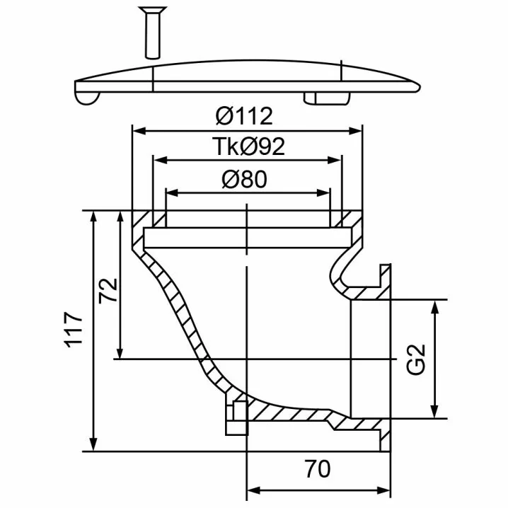 Донний злив Fitstar 2015020, 2", бокове підключення, 168 мм