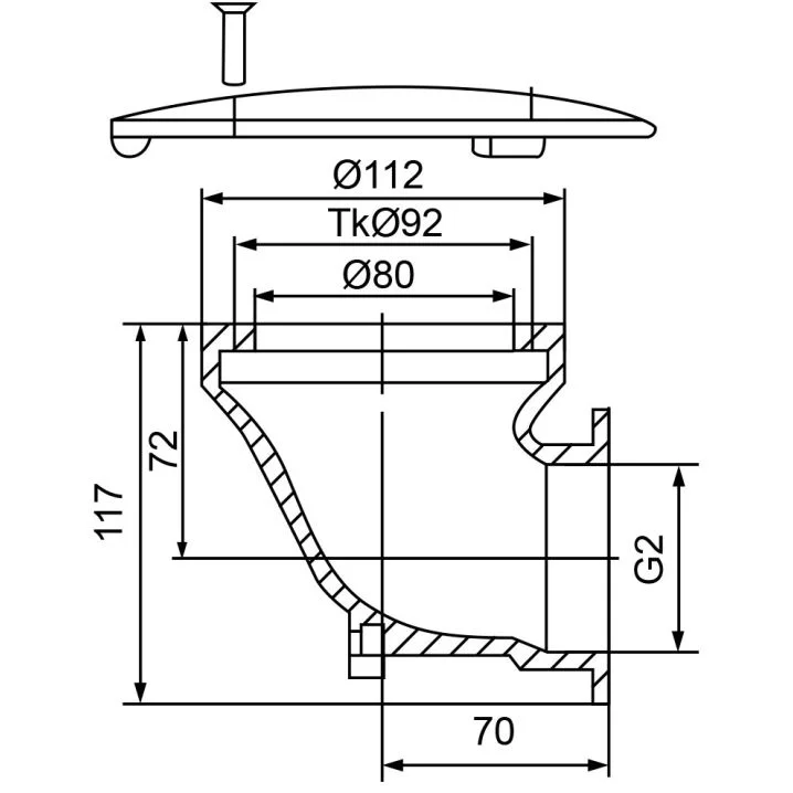 Донний злив Fitstar 2015021, 2", бокове під’єднання, 168 мм, для солоної води
