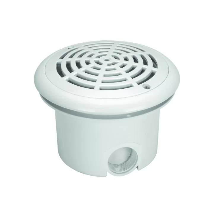 Донний злив Emaux EM2832V для басейнів. Рекомендується для поверхонь покритих гідроізоляційної мембраною (лайнером). Забезпечує дренаж води з чаші. Виготовлений з білого міцного пластику ABS, стійкого до впливу хімічних препаратів, УФ і механічного впливу. Пластик зберігає колір протягом тривалого часу.