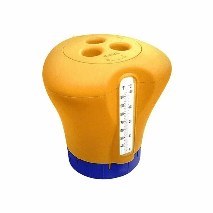 Плаваючий дозатор-термометр Kokido K619BU для хлорування басейнів. Виготовлений з нешкідливого полімеру. Регулює інтенсивність попадання дезинфікуючих речовин у воду в басейні. Оснащений термометром зі шкалою Цельсія і Фаренгейта. Не містить скла і ртуті.