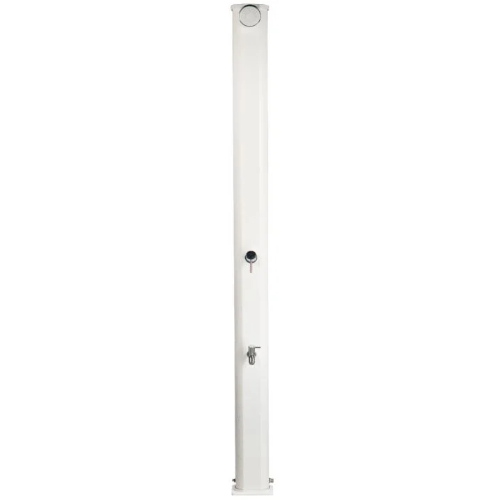 Вуличні душі Big Jolly є сучасними літніми душами з нагріванням води від сонця і простим мінімалістичним дизайном. У нижній частині корпусу знаходиться додатковий кран, який зручно використовувати для миття ніг, завдяки якому зручність у використанні зростає в кілька разів. Душ оснащений баком для води з максимальною в серії Jolly місткістю 35 літрів. Вуличний душ Big Jolly виконаний з алюмінію з порошковим антикорозійним покриттям, елементи - хромовані.