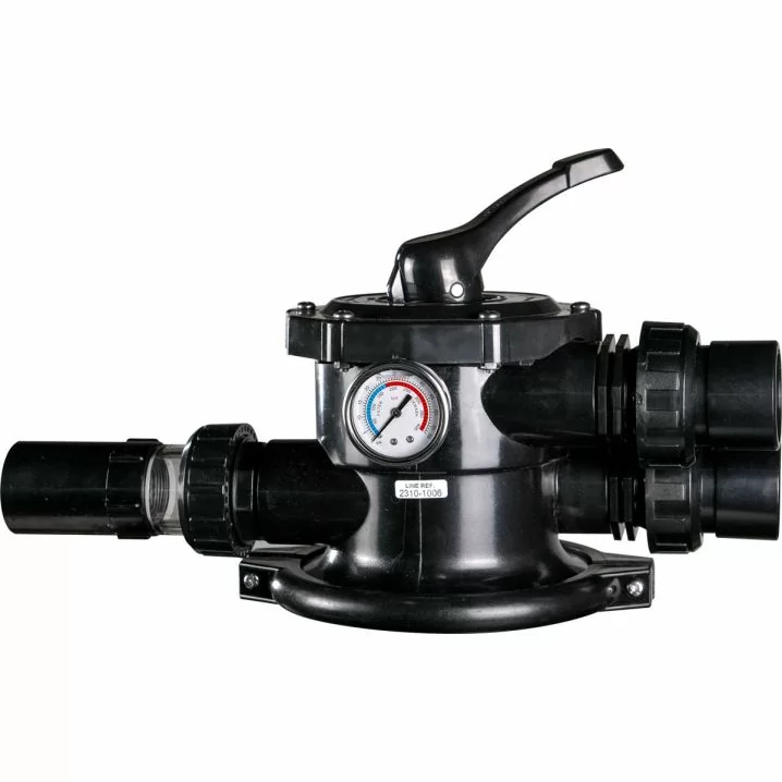Клапан на 6 режимів, манометр і універсальні з'єднувальні муфти на 1.5" (50 мм). Продуктивність: 12 м³/год, діаметр підключення: 1.5" (50 мм), завантаження піску: 85 кг.