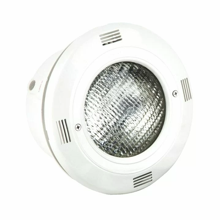 Галогенний прожектор, виготовлений з ABS пластика, стійкого до УФ та хімічного впливу, ідеально підходить для великих басейнів. Прозорий ударостійкий екран з полікарбонату забезпечує надійність та безпеку.