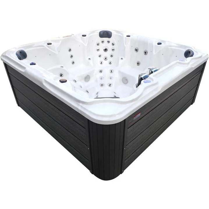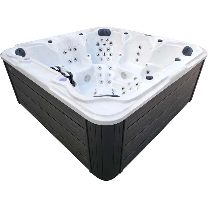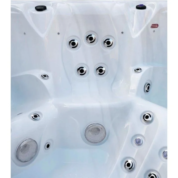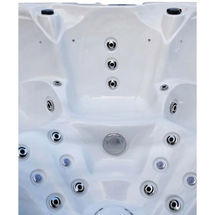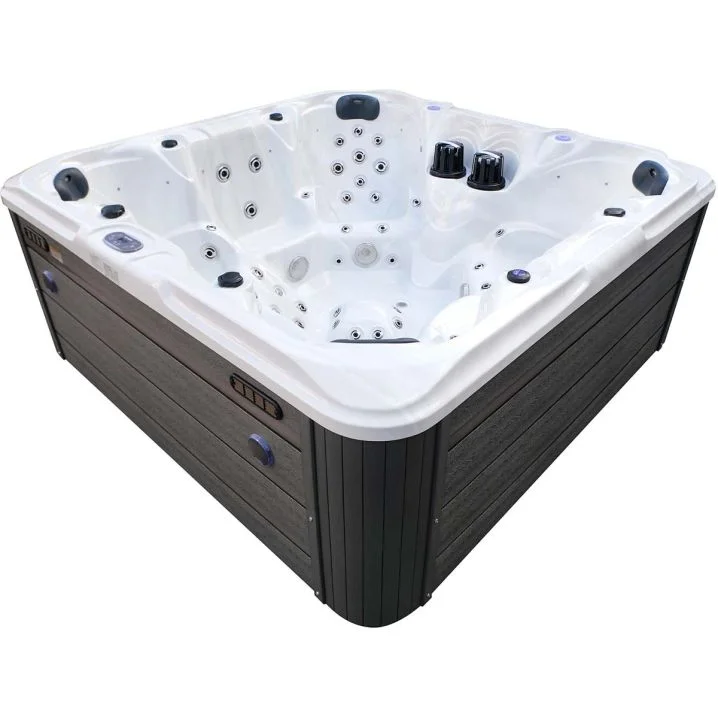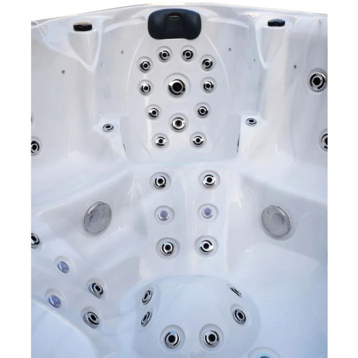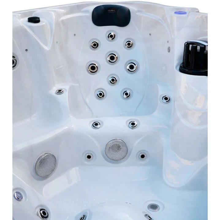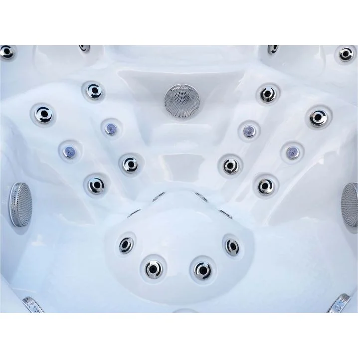Aquajoy Maldives – це сучасний СПА-басейн з 7 сидячими місцями. Обладнаний 89 гідротерапевтичними, 4 циркуляційними та 12 аерофорсунками. Має 4 вбудовані підголівники для більш комфортного розміщення всередині басейну. Чаша виготовлена ​​з акрилу провідної американської торгової марки Aristech® Acrylic. Пінополіуретан високої щільності на чаші та фольгована ізоляція товщиною 15 мм на корпусі забезпечують оптимальну теплоізоляцію. СПА-басейн оснащений автоматичною системою захисту від замерзання, нестачі води та перенапруги, а також двома Bluetooth-динаміками та зовнішнім LED-підсвічуванням. Панель управління та система контролю виготовлені одним із найкращих американських виробників Balboa. Розміри: 230х230х95 см Об'єм: 1520 л Кількість форсунок: 105
