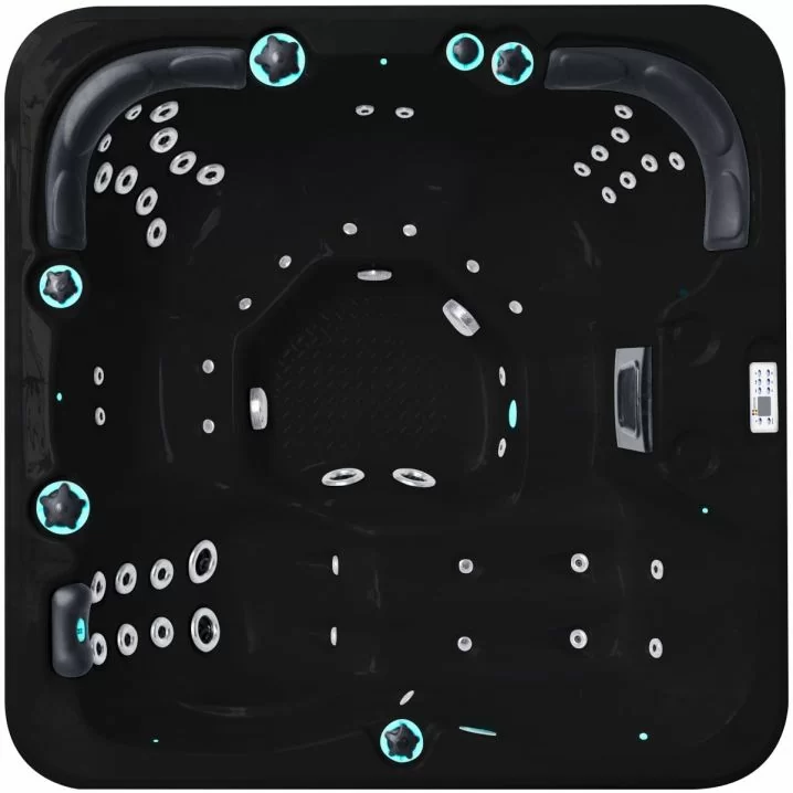 Матеріали: вінілестер і поліестер за технологією Aristech® Acrylic, трислойна ізоляція, захисне покриття Everlast™. Розміри: 204х204х85 см, об'єм 1380 л, 50 форсунок (40 водних, 10 повітряних).