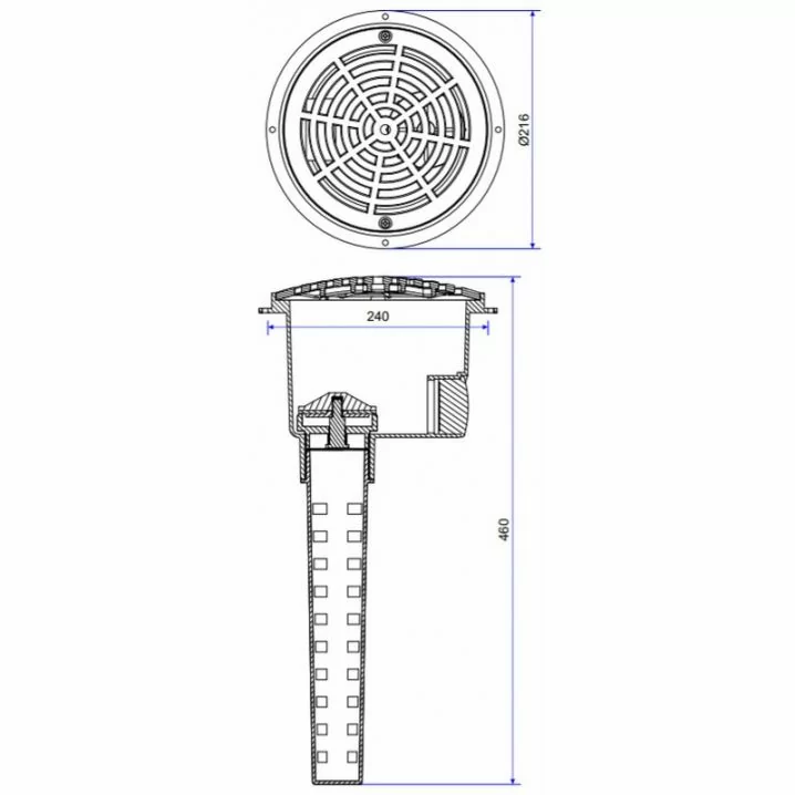 Рекомендується встановлювати у чашу басейну з бетонним покриттям. Основна частина та жолоб виготовлені з ABS пластику, куполоподібна кришка з ПВХ. Клапан стійкий до механічного впливу, ультрафіолету та хімічних реагентів. Комплектується трубкою для забору води.