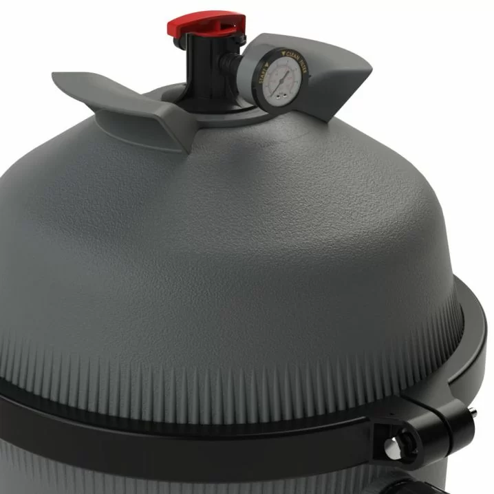 Фільтр має манометр для контролю, знімну ручку та комплект із 3 затискачів для швидкого доступу до бака.