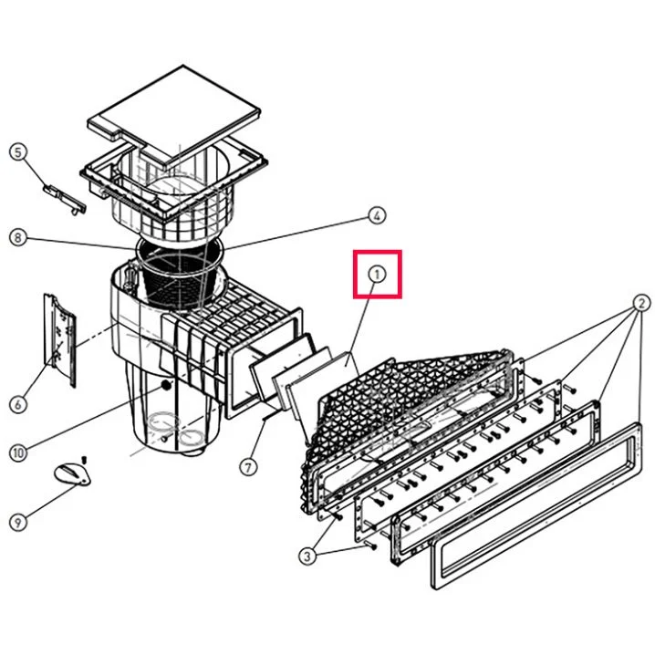 Комплект переливного шлюзу X-Line призначений для скімера Hayward X-Pro 600. Він використовується для з’єднання скімера з переливною системою басейну. Забезпечує надійну та герметичну установку. Цей товар зображено на схемі під №1.