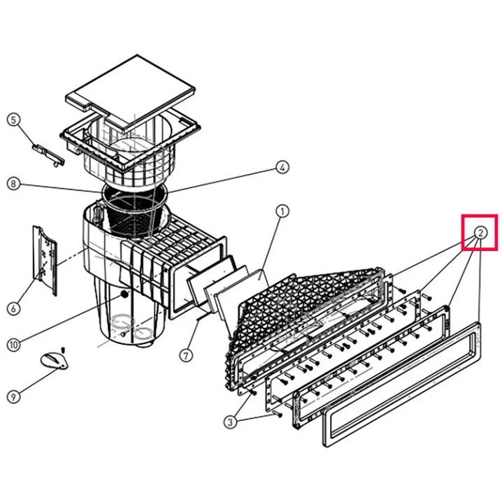 Комплект X-Line призначений для скімера Hayward X-Pro 600. До нього входять прокладки, фланець та набір для оздоблення. Цей товар зображено на схемі під №2.
