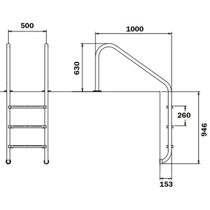 Модель призначена для заглиблених басейнів з широким бортом. Три сходинки з протиковзними накладками забезпечують безпеку, а гумові заглушки не порушують гідроізоляцію.