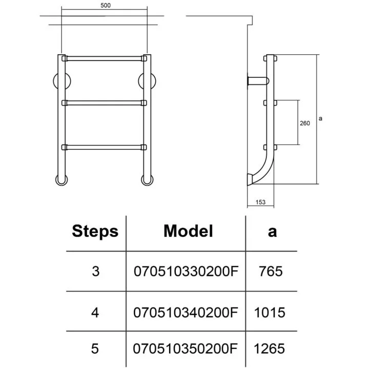 Нижня частина сходів для басейну Hayward IDP5 підходить для повністю занурених басейнів з вузьким бортиком. Сходи складаються з двох елементів (верхні поручні, нижні сходинки), які кріпляться окремо за допомогою анкерних болтів. Поручні кріпляться на поверхню бортика басейну, сходинки до стіни басейну. Нижня частина сходів не має кріплення, вона впирається в стіну через гумові вставки. Сходинки до труби фіксуються за допомогою болтів, передбачено полімерні накладки, що запобігають ковзанню ноги. Сходи виготовлено з нержавіючої сталі марки AISI-316, що забезпечує високу міцність і тривалий термін експлуатації виробів у воді плавальних басейнів. Поручень PD1 HF для сходів купується окремо. Тип кріплення: анкерне Кількість сходинок: 5