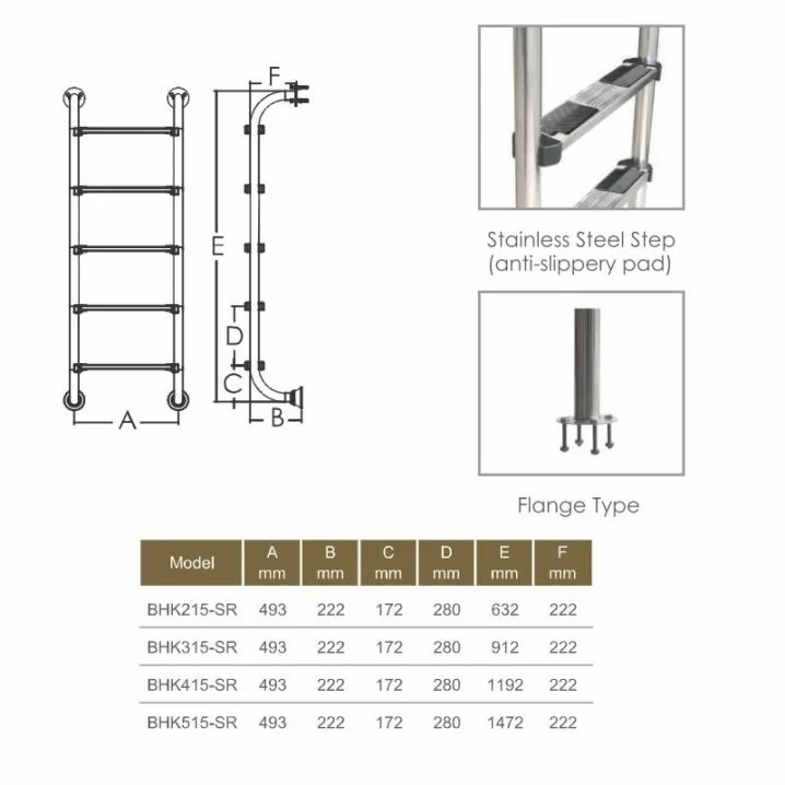 Зручний і безпечний спуск в басейн забезпечує ця модель. Використовується в заглиблених басейнах без верхніх поручнів. Виготовлена з полірованої нержавіючої сталі AISI-304, що гарантує довговічність.