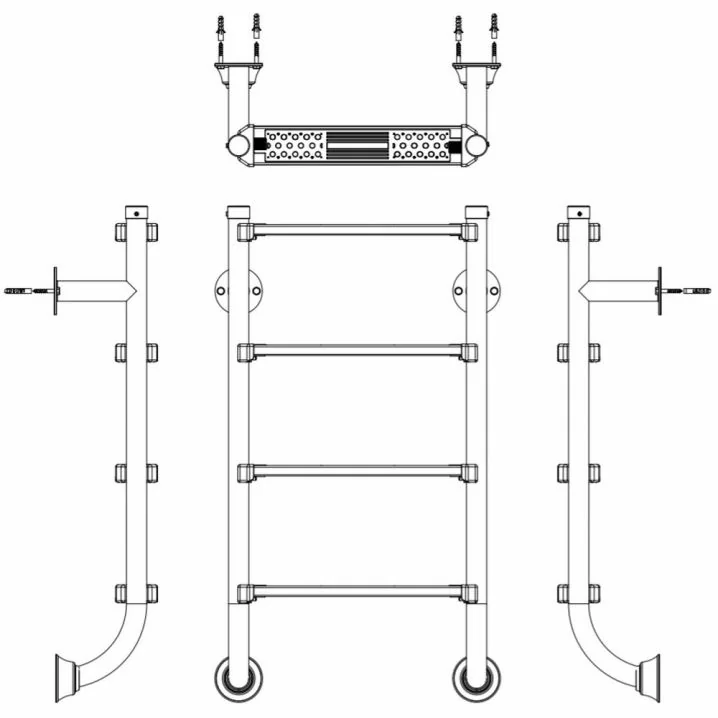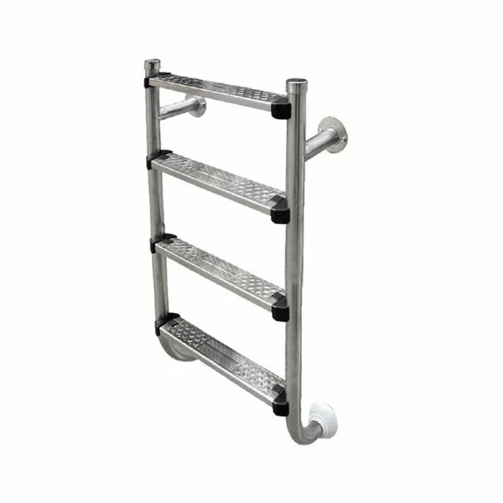 Сходинки кріпляться до поручнів болтами, а нижня частина упирається в стіну басейну прогумованою заглушкою. Підходить для заглиблених басейнів усіх типів.