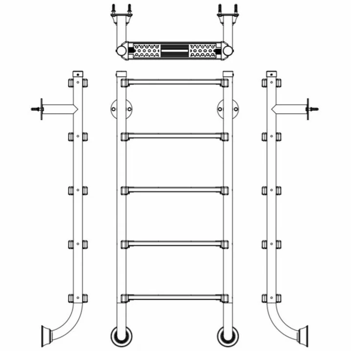 Сходи забезпечують зручний і безпечний спуск у басейн, виготовлені з нержавіючої сталі AISI-304. Кріплення до стіни гарантовано надійне завдяки допоміжному кріпленню з болтами.