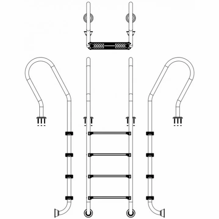 Ці сходи забезпечують зручний та безпечний спуск у басейн. Поручні та сходинки виготовлені з полірованої нержавіючої сталі AISI-304.