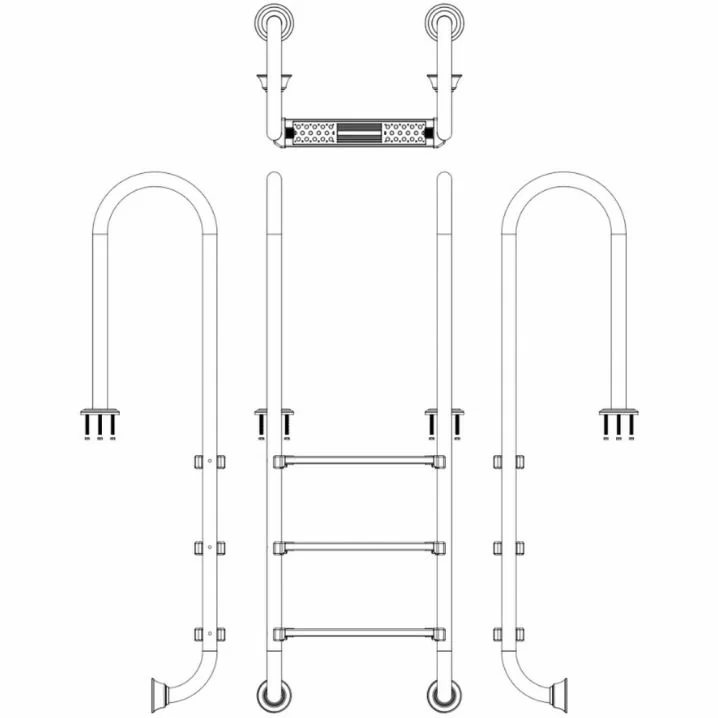 Модель забезпечує зручний та безпечний спуск у басейн. Поручні та сходинки виготовлені з полірованої нержавіючої сталі AISI-304, що забезпечує довговічність. Нижня частина має прогумовану заглушку для стабільності, а протиковзкі накладки на сходинках забезпечують безпеку.