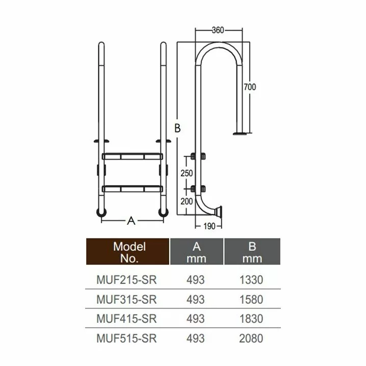 БільшеСходи для басейну Emaux Muro MUF515-SR (5 сходинок), AISI-304