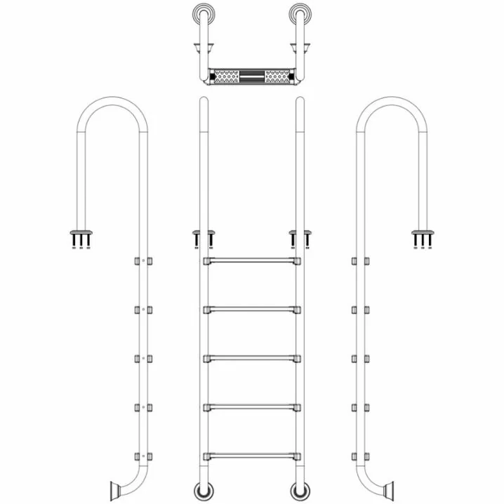 Цей модуль забезпечує зручний та безпечний спуск у басейн. Поручні і сходинки виготовлені з нержавіючої сталі AISI-304, стійкої до корозії. Нижня частина має прогумовану заглушку для додаткової безпеки.