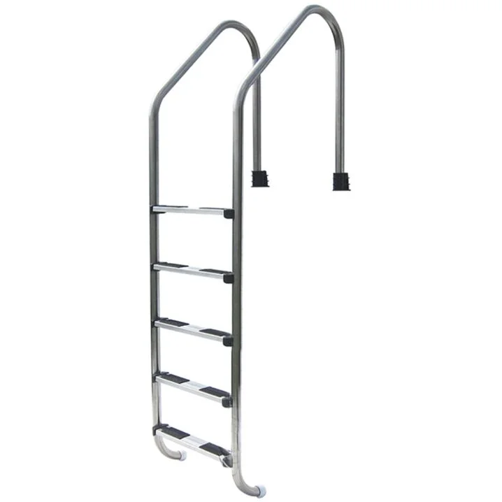 Зручний та безпечний спуск у басейн забезпечують ці сходи, виготовлені з полірованої нержавіючої сталі AISI 316. Поручні кріпляться до борту за допомогою пластикових стаканів, а нижня частина оснащена прогумованою заглушкою.