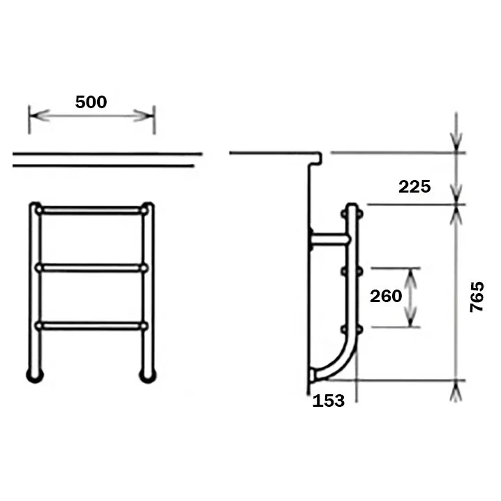 Ідеальний варіант для повністю заглиблених басейнів з вузьким бортом. Максимальне навантаження – 150 кг. Три сходинки з протиковзними накладками забезпечують безпеку. Гумові заглушки не порушують гідроізоляцію чаші.