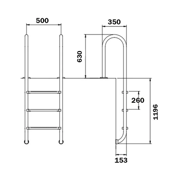 Сходи з поручнями призначені для заглиблених басейнів з вузьким бортом. Вони оснащені чотирма сходинками з протиковзкими пластиковими накладками, що забезпечують безпеку.