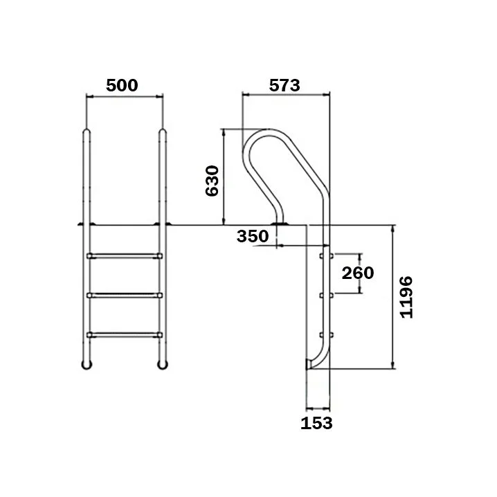 Ця модель призначена для заглиблених басейнів з вузьким бортом. Чотири сходинки мають протиковзні пластикові накладки для безпеки.