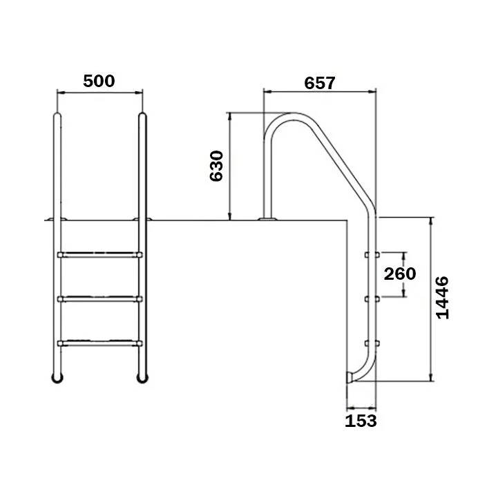 Призначені для заглиблених басейнів, ці сходи оснащені п’ятьма сходинками з протиковзними пластиковими накладками. Завдяки гумовим заглушкам, кріплення не порушує гідроізоляцію чаші.