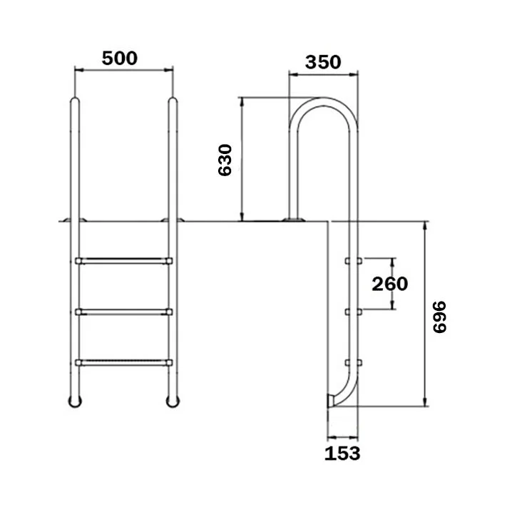 Модель призначена для заглиблених басейнів з вузьким бортом. Оснащені двома сходинками з протиковзними накладками та гумовими заглушками для збереження гідроізоляції.