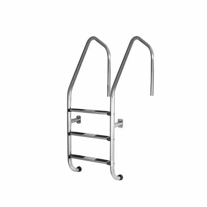 Сходи Kripsol Munich EMI 3.D призначені для зручного та безпечного спуску в басейн. Поручні і сходинки виготовлені з полірованої нержавіючої сталі марки AISI-304. Спеціальна обробка сталі для захисту від атмосферного впливу і корозії. Поручні кріпляться до борту за допомогою пластикових склянок (анкерів). Нижня частина сходів впирається в стіну басейну прогумованою заглушкою. Має додаткове фланцеве кріплення (опору) для стіни. Оптимальне рішення для басейнів з переливним жолобом. У комплекті поставляються всі елементи кріплення і заставні.