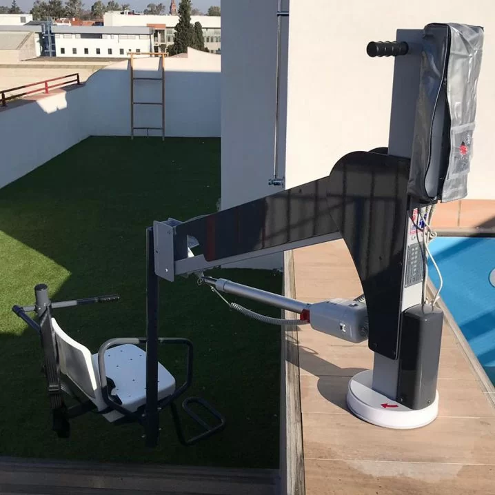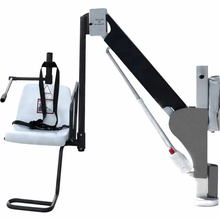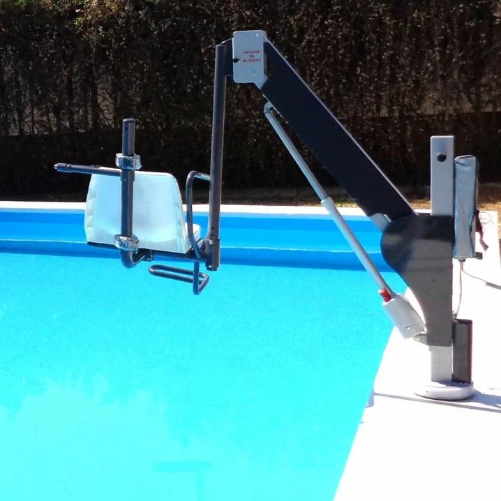 Цей стаціонарний механічний підйомник забезпечує легке вертикальне переміщення в звичайних та надземних басейнах. Встановлюється на борту води, може комплектуватися сидінням або системою ременів безпеки (за запитом).