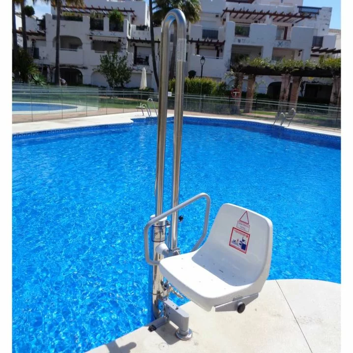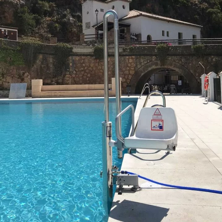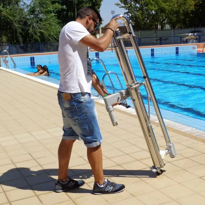Стаціонарно-знімний гідравлічний підйомник, що монтується та демонтується за три хвилини. Ідеальний для басейнів без постійного встановлення, забезпечує тиск води від 3.5 до 5.5 бар, залежно від вантажопідйомності.