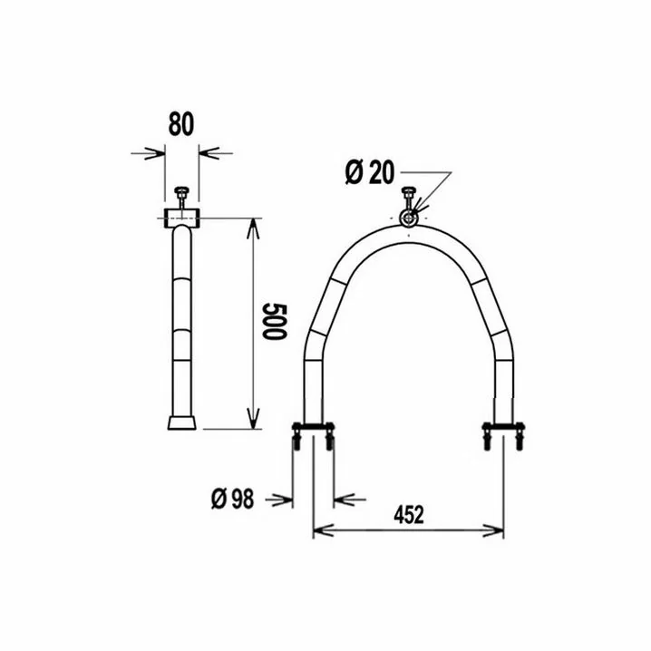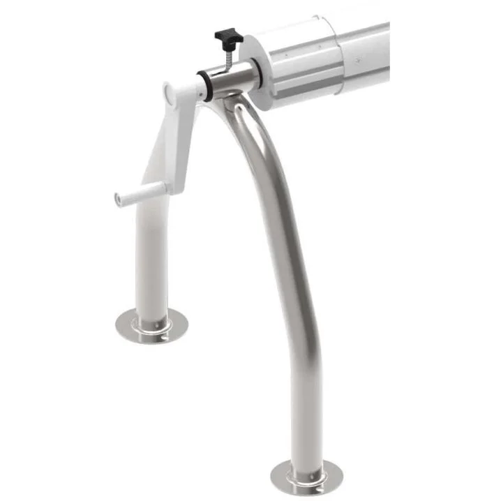 Опора фіксується до підлоги за допомогою фланців. Штанга має доступні довжини 250-450 см, 430-570 см або 530-690 см, що дозволяє вибрати оптимальний варіант для вашого басейну. Ручка може бути встановлена з будь-якого боку. Штанга купується окремо.