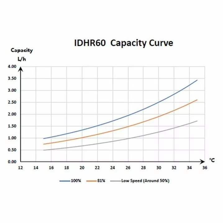 Потужність осушення: 60 л/добу. Площа приміщення: 50 - 100 м². Фреон: R32. Інверторний компресор Mitsubishi забезпечує високу продуктивність з низьким енергоспоживанням.