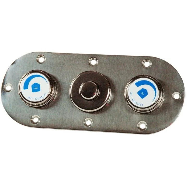 Панель управління Fitstar 8703020 – призначена для керування гідромасажним атракціоном. Панель оснащена двома регуляторами подачі повітря у форсунки та п'єзоперемикачем. Монтується в бетонні та лайнерні басейни. Виготовлена з бронзи, стійкої до корозії, дії ультрафіолету та хімічних реагентів.