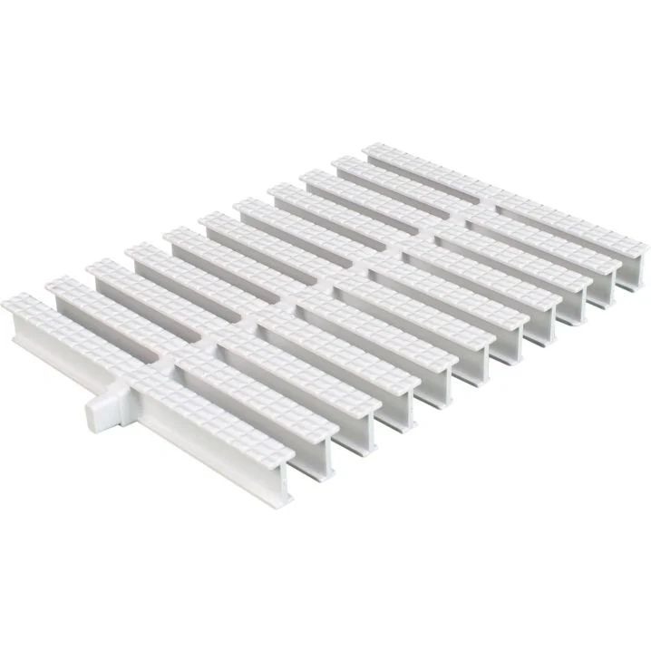Переливна решітка Aquaviva. Серія KP HKE02 Classik. Набірна (складається з окремих елементів). Використовується для створення зони переливу у басейнах. Виконує функцію забору води, а також функцію декору. Деталь виготовлена з високоміцного полімерного сплаву, стійкого до УФ та вологості. Матеріал розрахований на цілорічне розміщення на вулиці навіть за умов мінусових температур. Ціна вказана за метр погонний. Решітка відвантажується кратно метра (45 модулів на 1 метр). Розмір: 195х25 мм (має допуск +-1% від заявленої ширини в готовому виробі) З'днанная: центральне Колір: білий