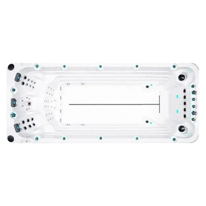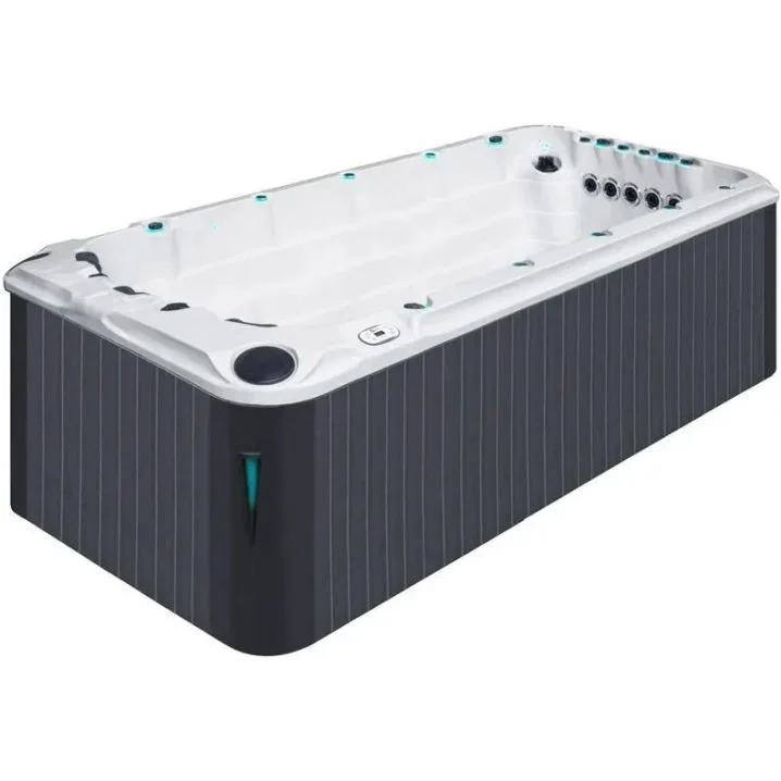 Сучасний СПА з трьома ковшоподібними сидіннями, масажними форсунками та місцем для плавання. Виготовлений з вінілестеру та поліестеру за технологією Aristech® Acrylic.