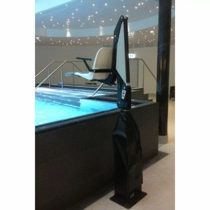Фіксований підіймач забезпечує безпечний та комфортний доступ до води для людей з обмеженими можливостями. Управління процесами здійснюється за допомогою кнопкового пульта, що полегшує використання.