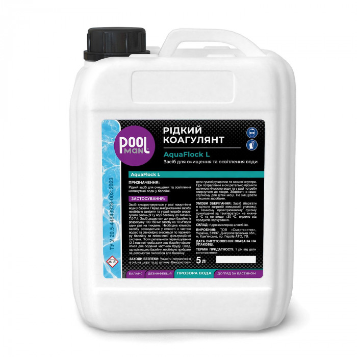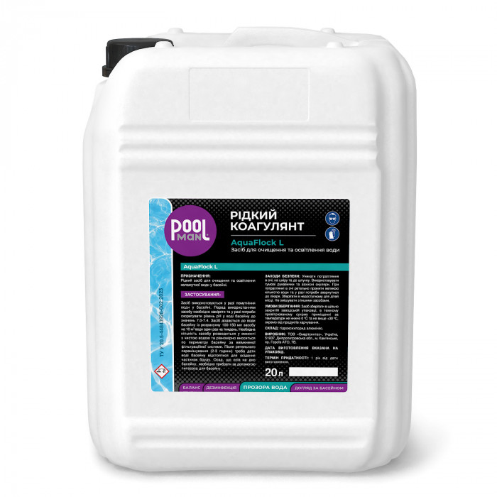 Застосування: Засіб використовується у разі помутніння води у басейні. Перед використанням засобу необхідно заміряти та у разі потреби скорегувати рівень pH у воді басейну до значень 7.0-7.4. Засіб додається до води басейну із розрахунку 100-150 мл засобу на 10 м3 води один раз на тиждень. Необхідна кількість засобу розводиться у ємності з чистою водою та рівномірно вноситься по периметру басейну за ввімкненої фільтраційної системи. Після ретельного перемішування (2-3 години) треба дати воді басейну відстоятися для осідання частинок бруду. Осад, що осів на дно басейну, необхідно прибрати за допомогою пилососа для басейну.