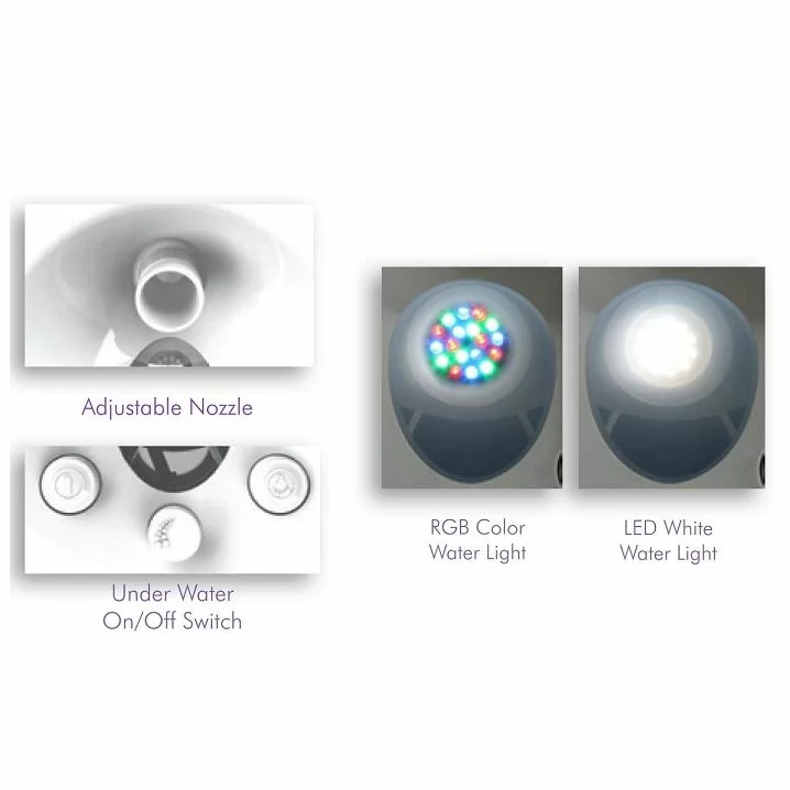 Створює потужний справлений потік води, що дозволяє плавати навіть у невеликих басейнах. Використовується для масажних і оздоровчих водних процедур, оснащений вбудованою кольоровою LED-підсвіткою.