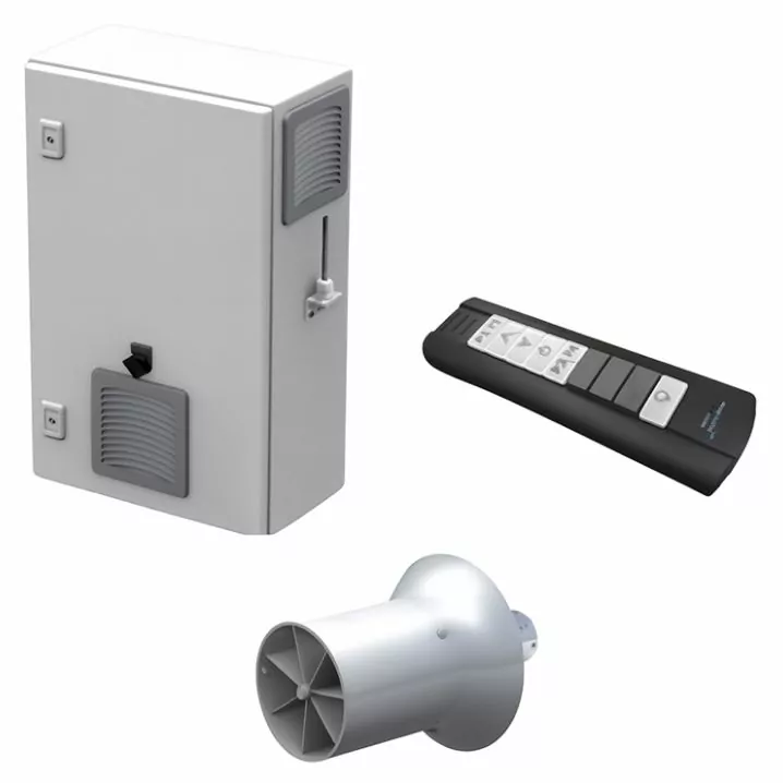 Під’єднується до стандартної побутової електромережі. Керування здійснюється за допомогою пульта, що входить до комплекту. Для монтажу турбіни необхідний вбудований каркас, який купується окремо.