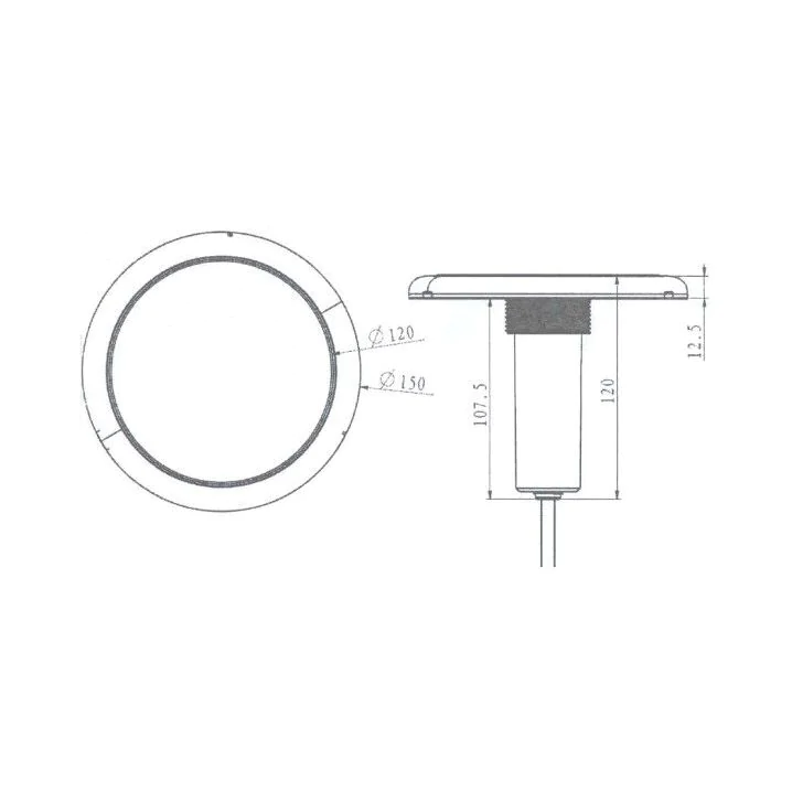 Рамка з нержавіючої сталі AISI 316 забезпечує стійкість до кислот і лугів, що дозволяє використовувати його у солоній воді. Потужність: 21 Вт, кількість світлодіодів: 252. Тип установки: вбудований/настінний.