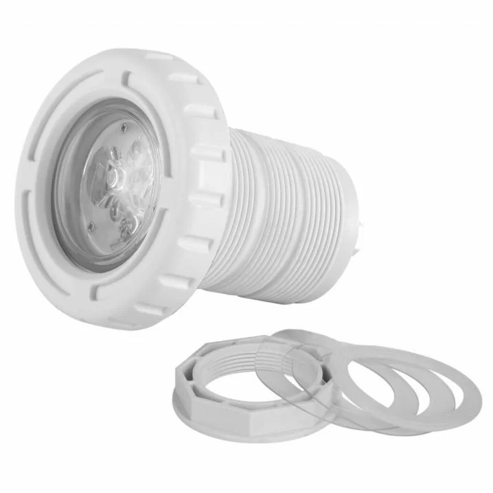 Виготовлений із міцного пластику, цей прожектор відповідає стандарту вологозахисту IP68 і забезпечує чудове освітлення басейнів та SPA. Діаметр складає 95 мм, а світлодіодні чіпи EPISTAR гарантують якість.