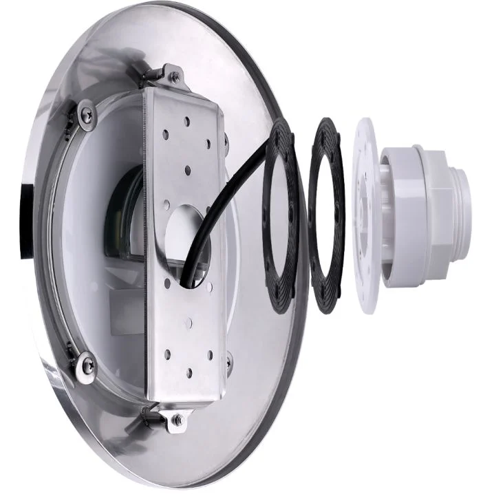 Виготовлений з нержавіючої сталі AISI 316, матеріал стійкий до корозії та кислот. Вологозахист IP68 забезпечує надійність у водному середовищі. Ідеальний для освітлення басейнів та SPA.