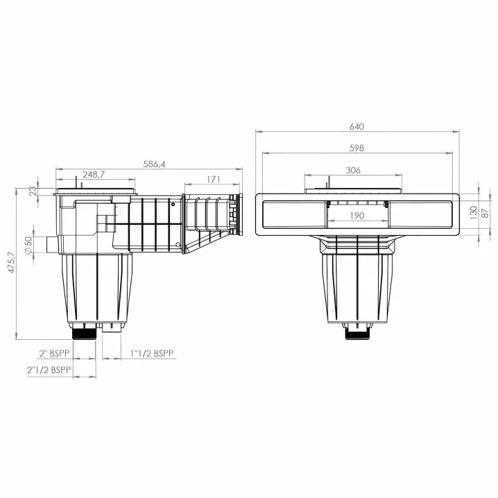 Переливне з’єднання: 50 мм