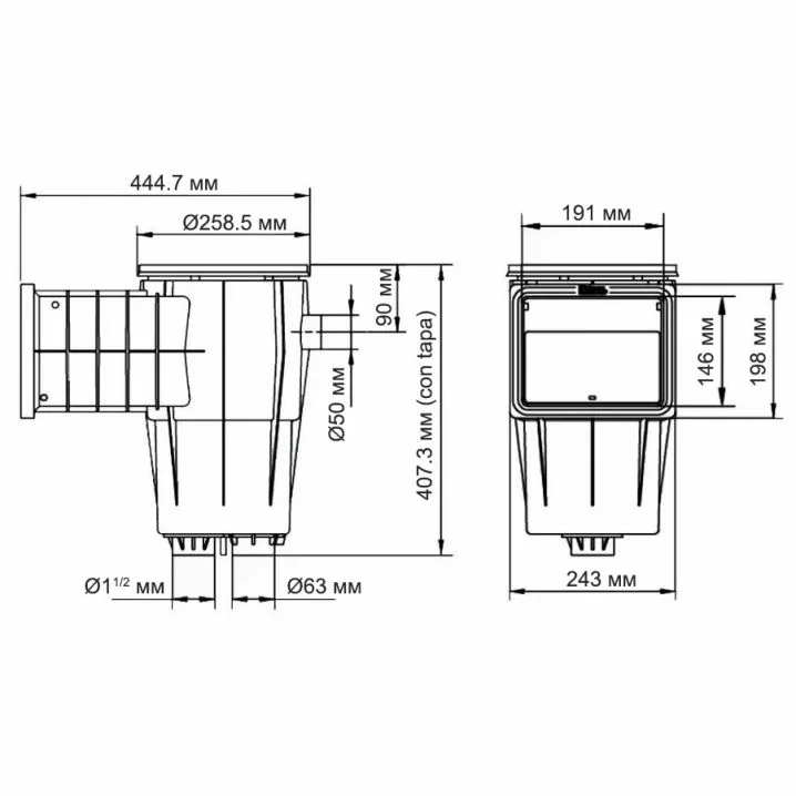 Нижнє з'єднання: 1.5"