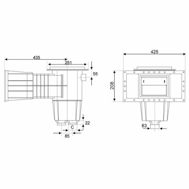 Скімер Waterline Wide - призначений для встановлення в басейни під лайнер. Виготовлений із міцного ABS пластику, стійкого до ультрафіолету, тиску води та хімічних реагентів. Має латунні вставки.