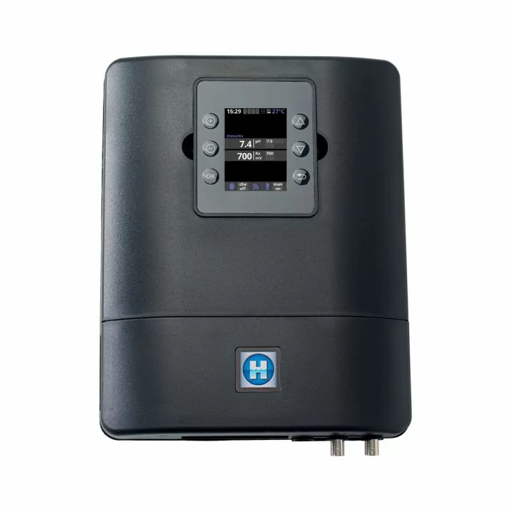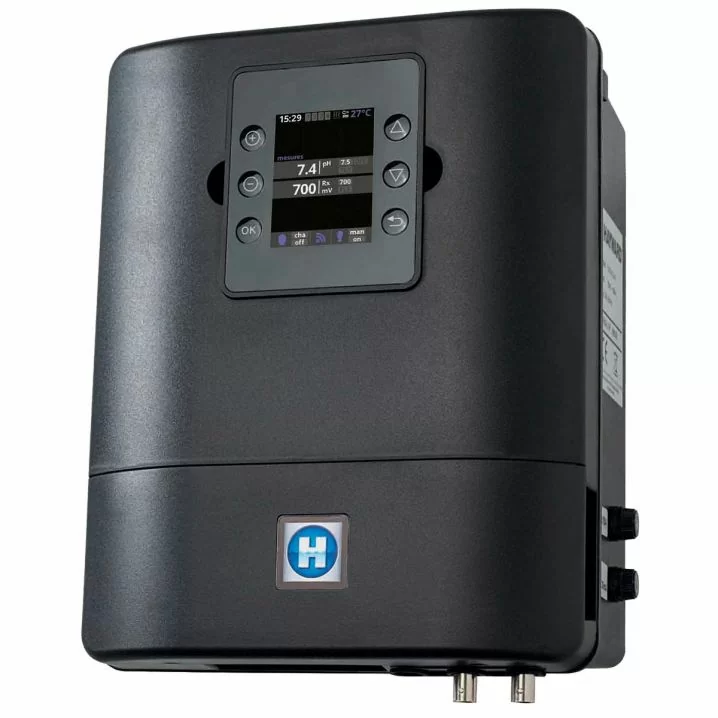 Регулює рівень pH, ORP і вільного хлору. Має 30-денний запис даних з видаленим управлінням Wi-Fi. Комплектується термодатчиком, електроди і модуль Wi-Fi отримуються додатково.